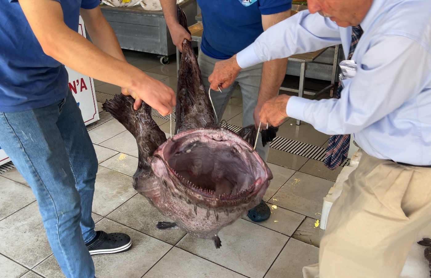 Dev Fener Balıkları’nı gören vatandaşlardan Şaban Çiçek, “Ağzında balıklar var henüz yutmaya fırsatı olmamış herhalde şaşırmamak mümkün değil. Bayağı büyük bir balık. Görmedim daha önce ilginç geldi” dedi.